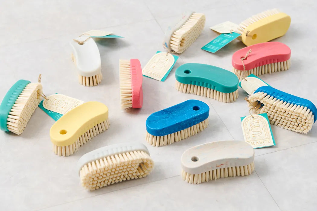 CRASOU 清潔刷具本體選用環保再生塑膠(recycled PP)兼顧清潔功能的同時,也選擇更永續、耐用且安心的材質,讓我們每一次為自己生活的清潔打掃,也都能讓社會與地球更美好