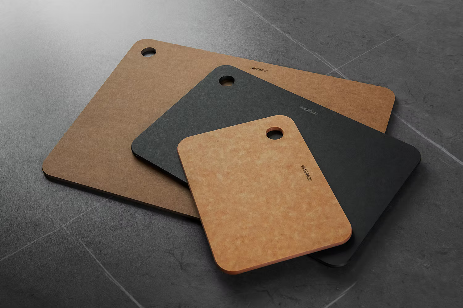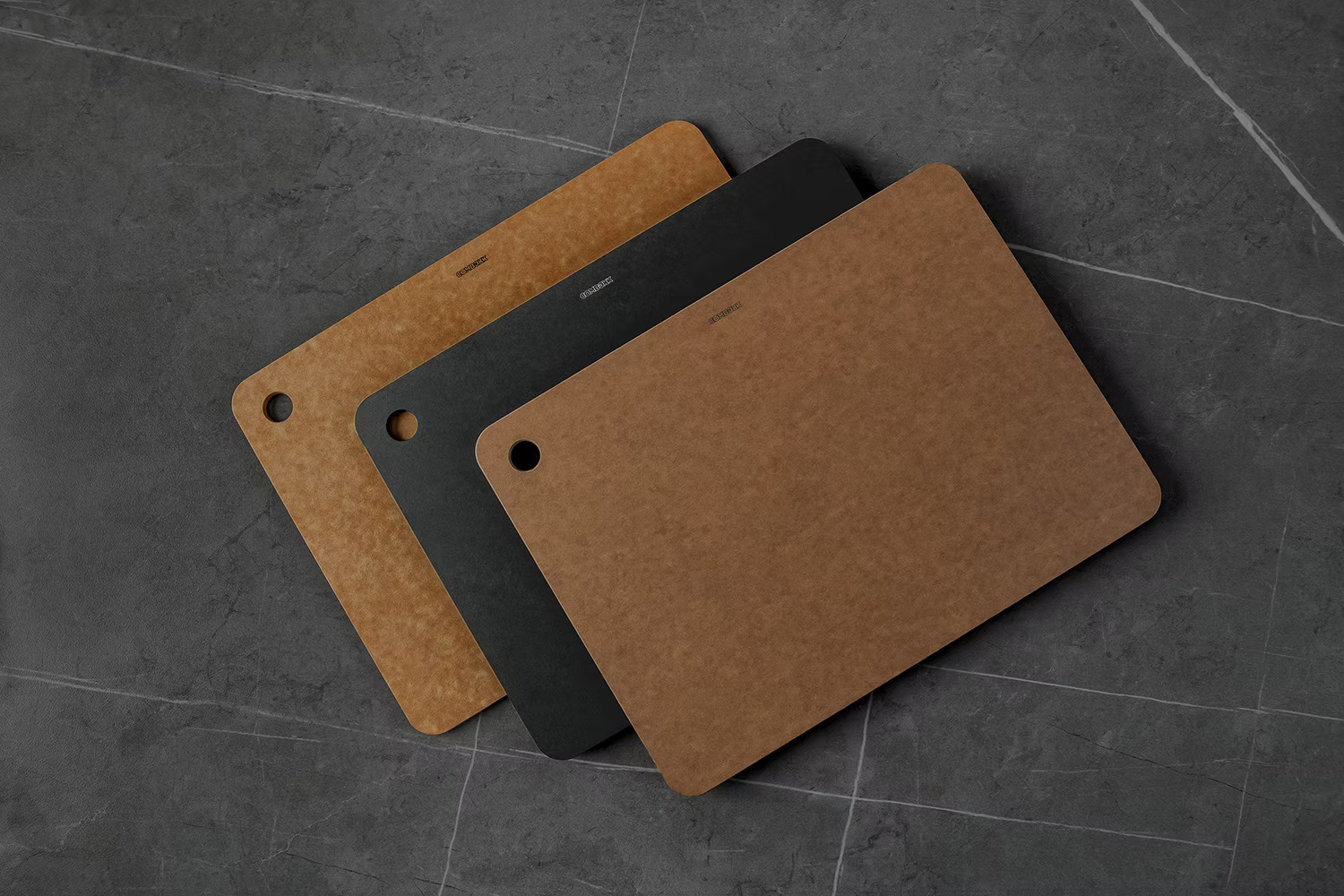 Richlite 是一種 100% 再生紙與樹脂在高壓下製成的環保材料,結構強度高,不損刀鋒,保護廚刀鋒利度;且因其高密度結構,非常耐用,具防霉效果,適合台灣潮濕的氣候