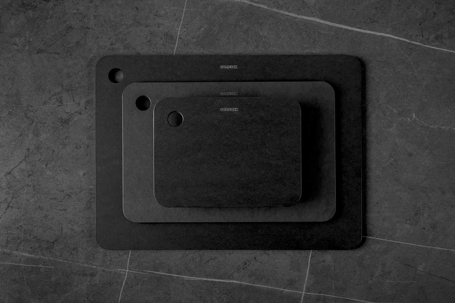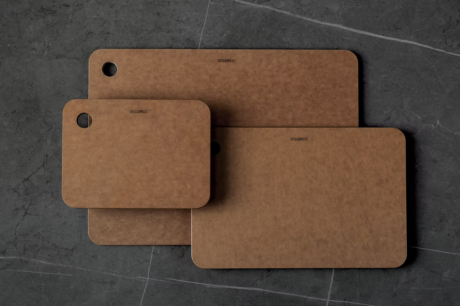 因 COMBEKK 環保紙砧板由再生紙纖維與食品級 Richlite 樹脂在高溫高壓下固化而成,新品拆封時帶有淡淡的「木質樹脂味」屬於正常現象(類似新家具或高品質纖維材的味道)請安心使用。