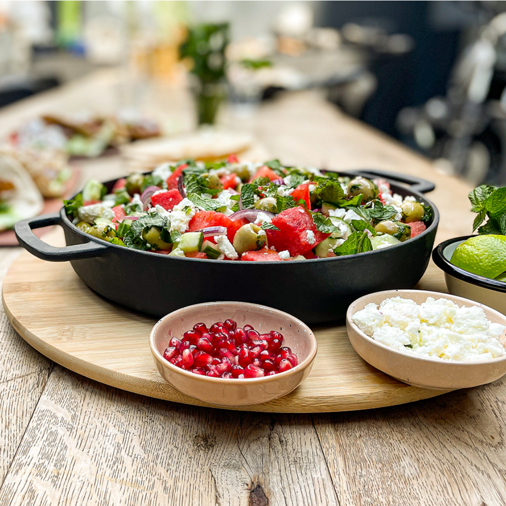 平底鍋採用百分之百回收鐵,適合於各種的烹煮方式,可以燒烤蔬菜,也可以烤派